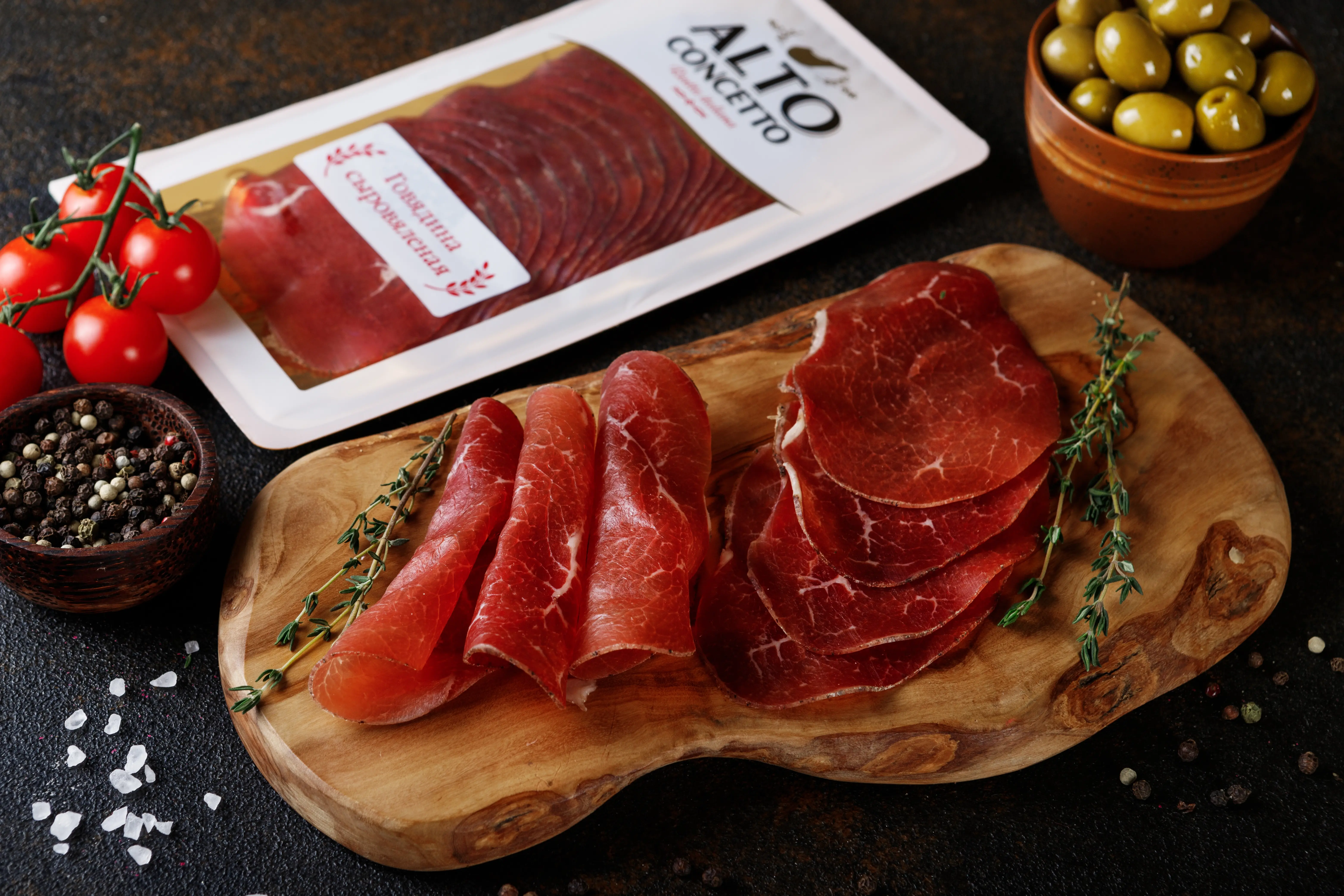 Сыровяленая говядина с тонким вкусом — к сыру, салатам и лёгким закускам.