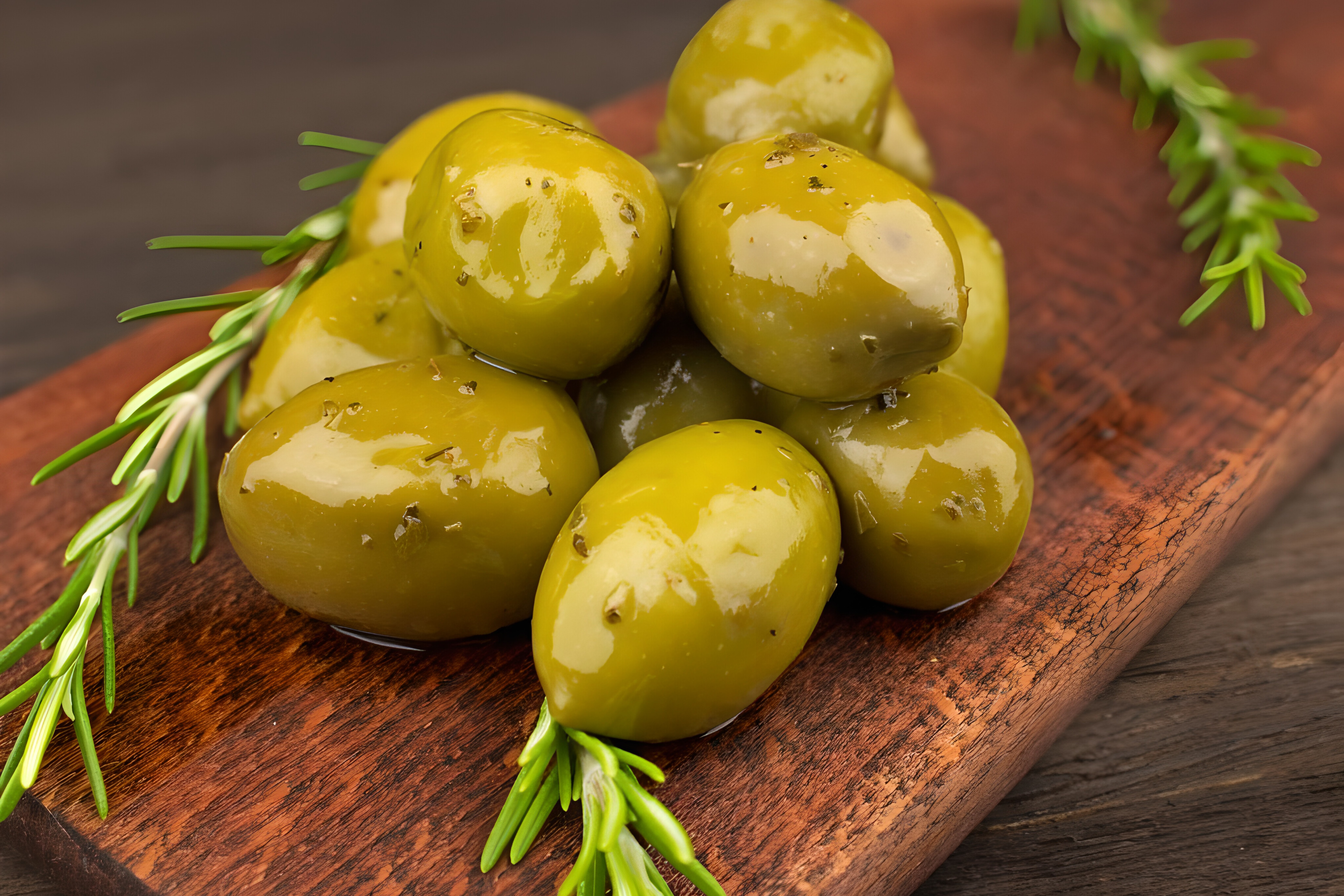 Целые зелёные оливки — классическая закуска к сыру, салатам и антипасти.