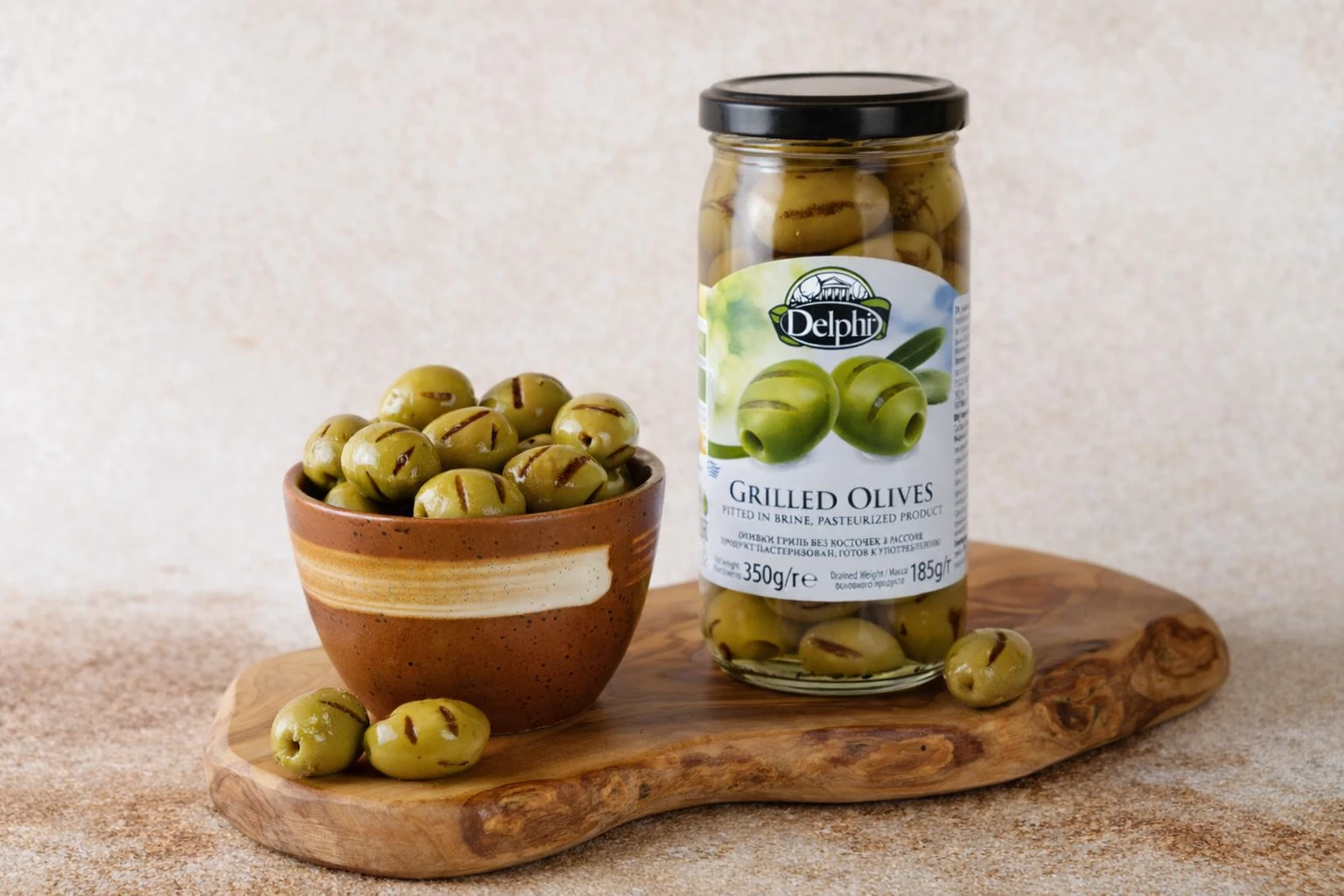Отборные оливки проходят обработку на гриле, благодаря чему приобретают насыщенный вкус с тонкими поджаренными нотами. Такой способ приготовления раскрывает глубину вкуса и делает текстуру ещё более сочной и выразительной.