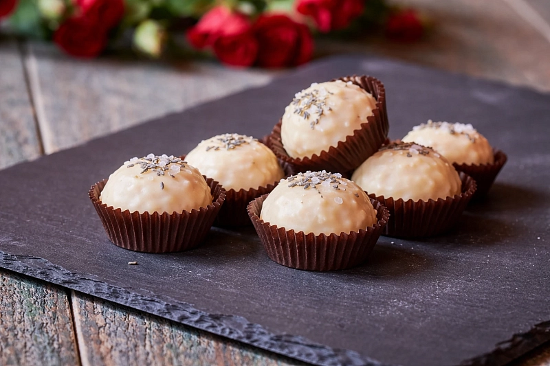 Белый бельгийский шоколад с тонким ароматом лаванды и деликатной сырной нотой. Нежно, изысканно, слегка по-провански.
