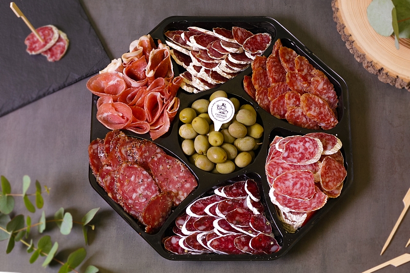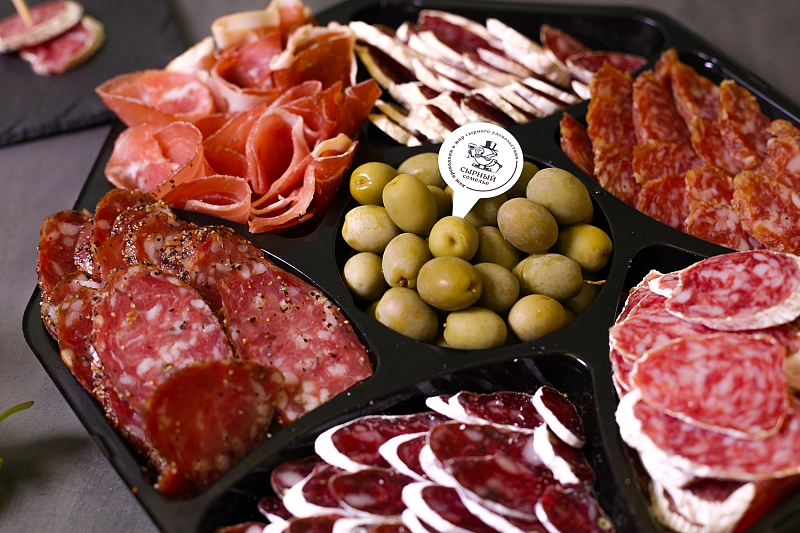 Это не просто мясное ассорти, а продуманная композиция из сыровяленых и вяленых деликатесов. Разные текстуры, специи и степень выдержки создают ритм: от мягкого старта к яркому, долгому финалу.