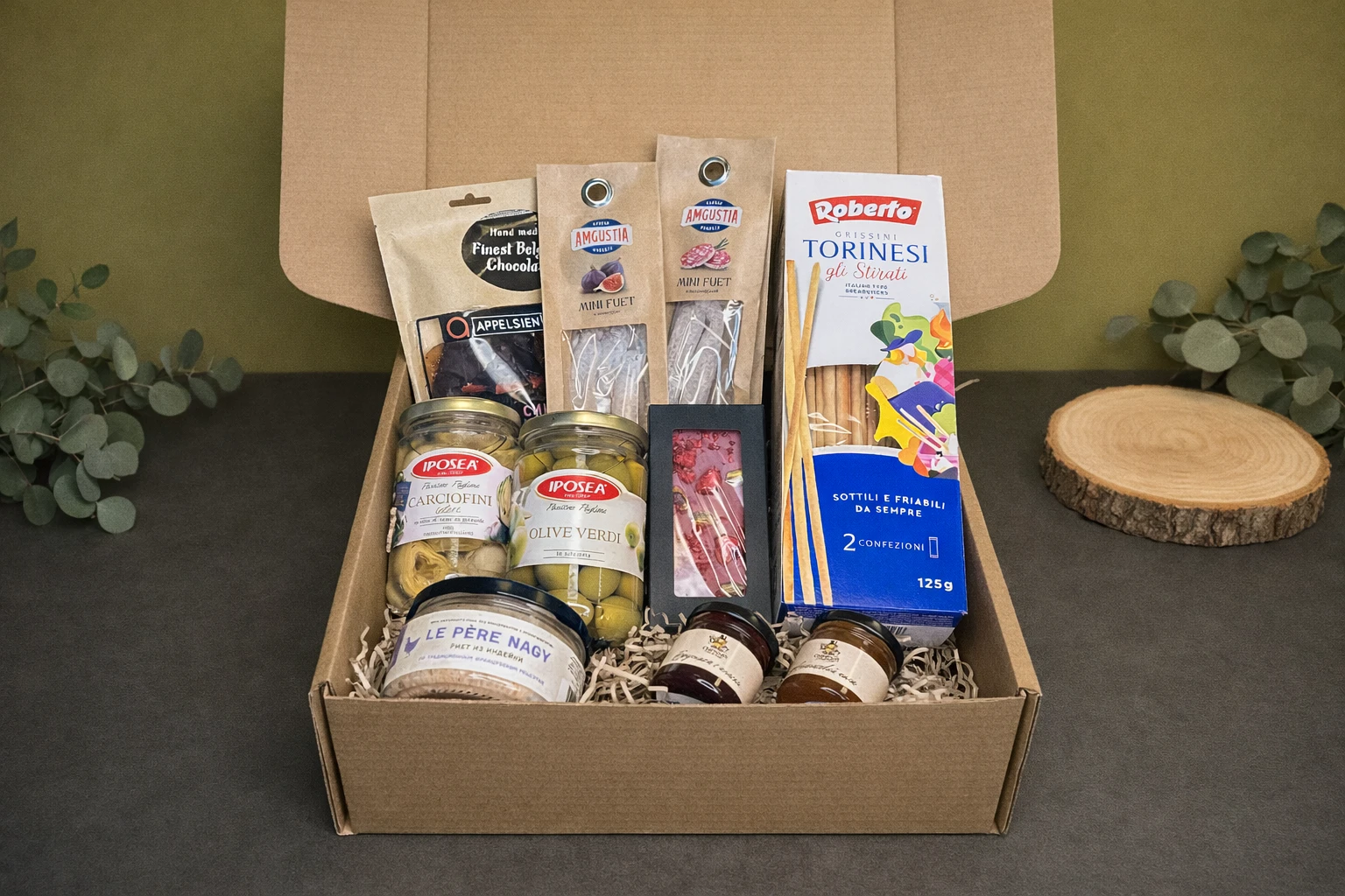 Внутри — сочетание деликатесов, сладостей и лёгких закусок, которые создают полноценную дегустацию: от солёных акцентов до нежных шоколадных нот. Праздничный, уютный и очень атмосферный бокс, который хочется открывать и пробовать прямо сейчас 💛.