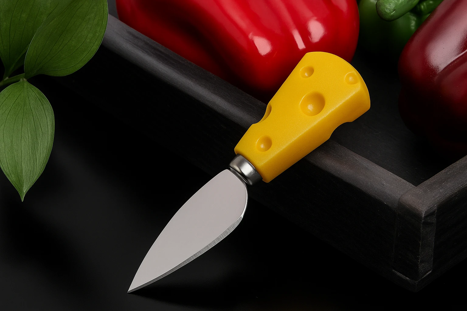 Специальный листовидный нож с коротким толстым лезвием предназначен для раскрашивания пармезана и похожих сортов. По виду он похож на лопатку с заостренным концом.