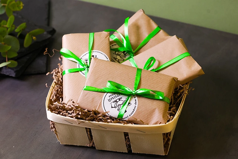 Набор приезжает в уютной плетёной шпонке, аккуратно упакованной в прозрачную плёнку.